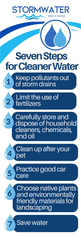 - Storm Drains: Items such as litter, leaves, fertilizer, oil, or chemicals must never be placed down a storm drain. Only rain in the drain.